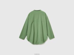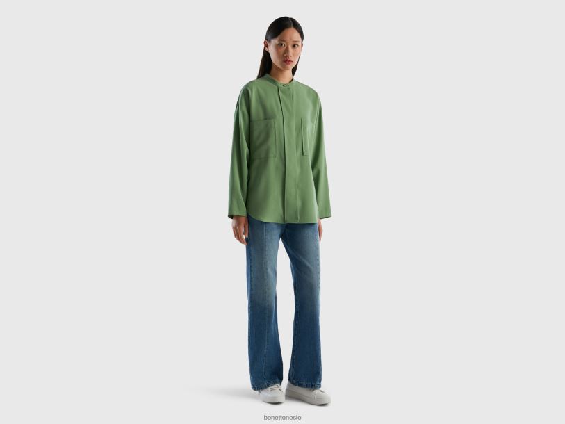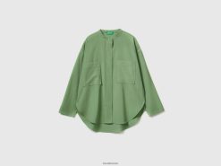 grønn Benetton kvinner komfortabel passform skjorte med lommer 20TRB3956