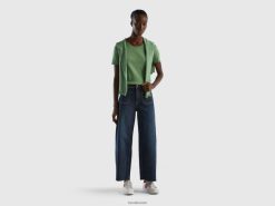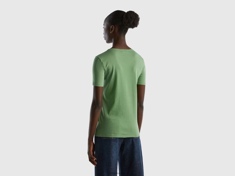 grønn Benetton kvinner langfiber t-skjorte i bomull 20TRB328