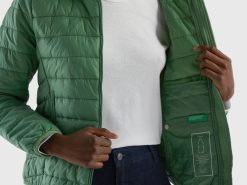 grønn Benetton kvinner pufferjakke med resirkulert vatt 20TRB3744