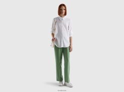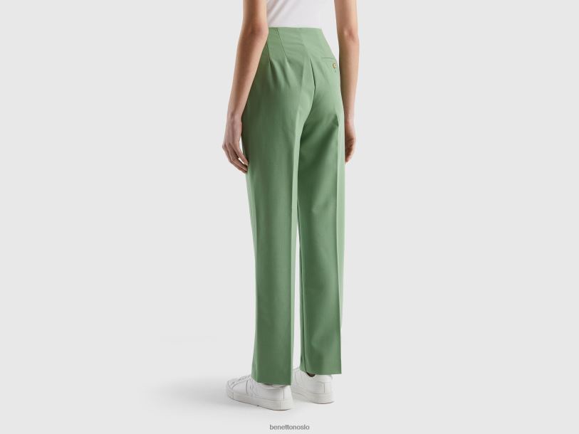 grønn Benetton kvinner rette bukser med høy midje 20TRB615