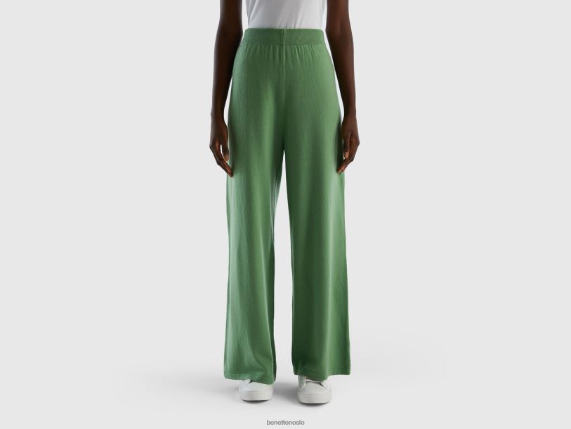 grønn Benetton kvinner salviegrønn bukse i ull- og kashmirblanding 20TRB4068