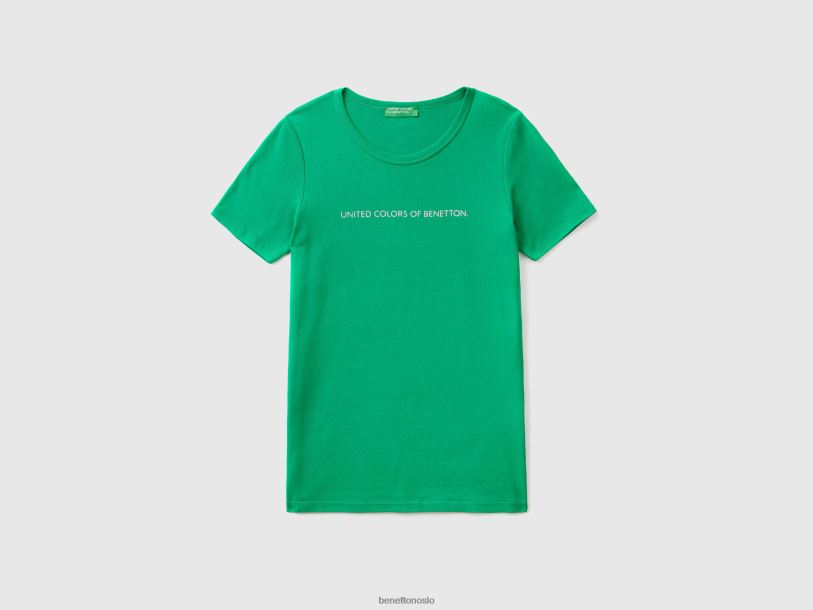 grønn Benetton kvinner t-skjorte i 100 % bomull med glittertrykk logo 20TRB468