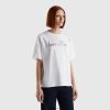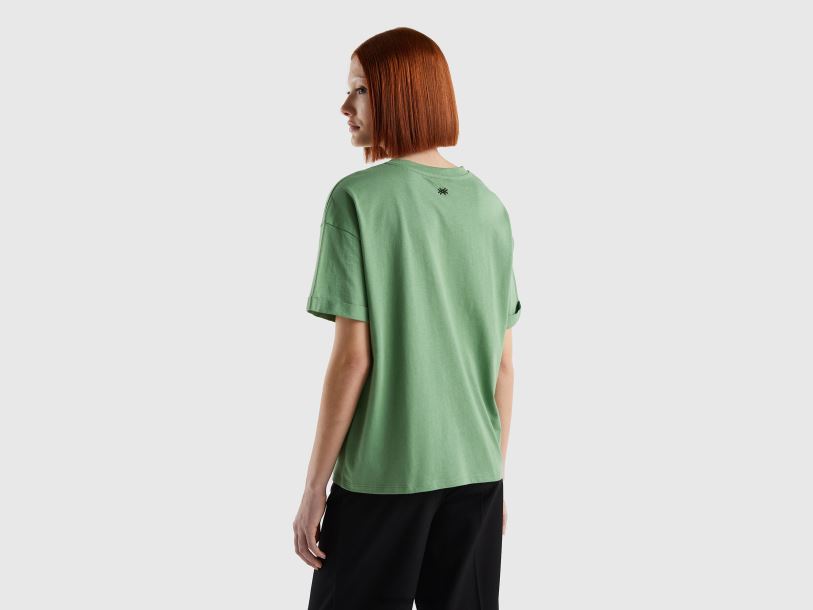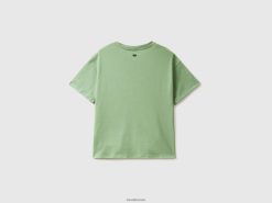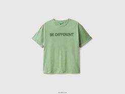 grønn Benetton kvinner T-skjorte i 100 % bomull med slagord 20TRB3781