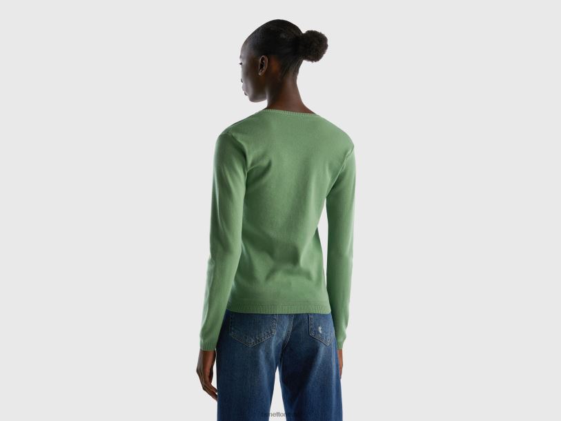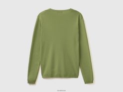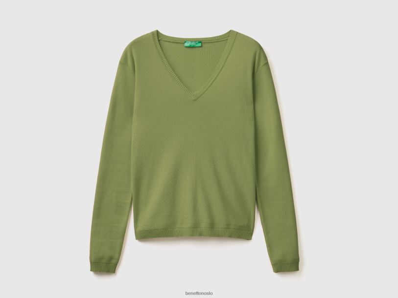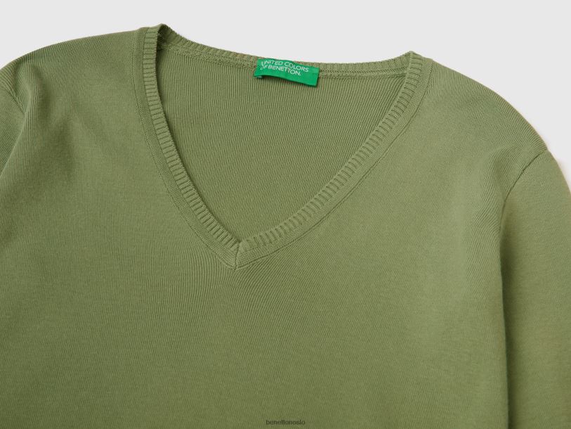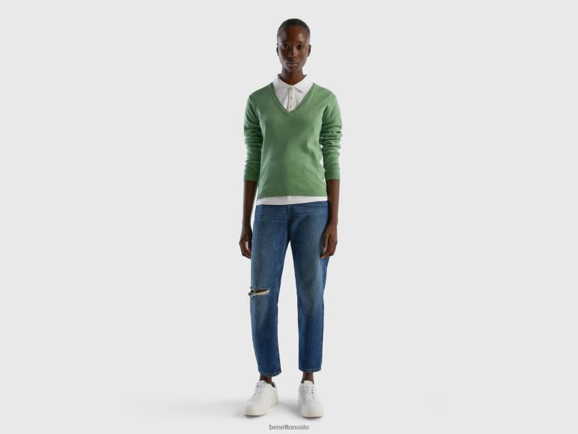 grønn Benetton kvinner v-halset genser i ren bomull 20TRB80
