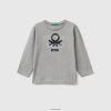 gul Benetton barn langermet t-skjorte i økologisk bomull 20TRB2164
