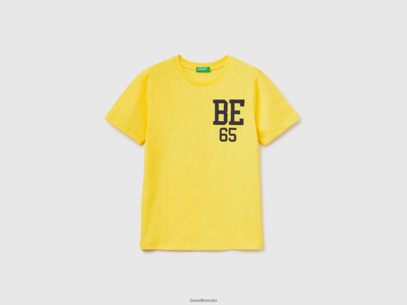 gul Benetton barn T-skjorte i 100 % økologisk bomull med logo 20TRB1665