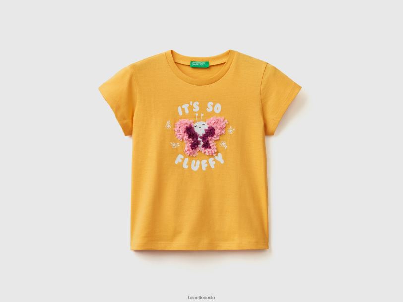 gul Benetton barn t-skjorte med applikasjon med petallook 20TRB2881