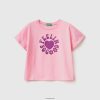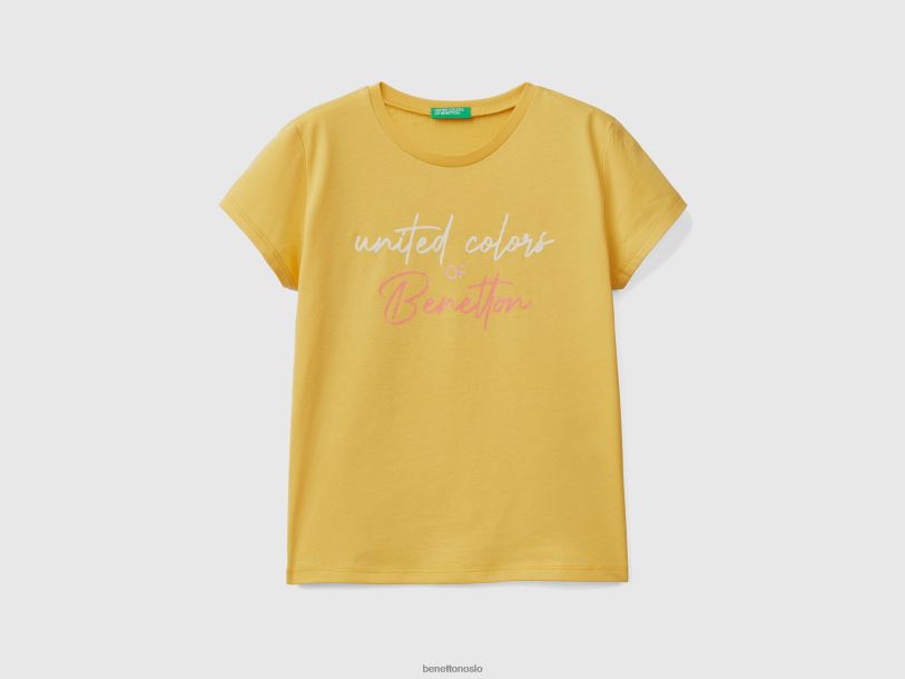 gul Benetton barn t-skjorte med glitrende logo i økologisk bomull 20TRB5267