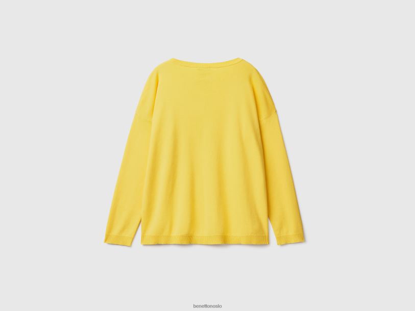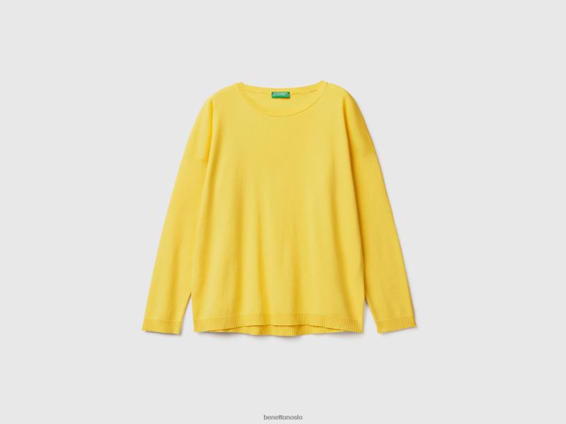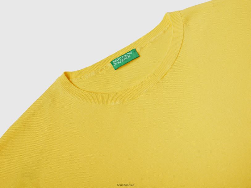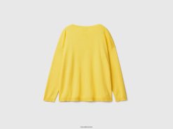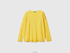 gul Benetton kvinner bomullsgenser med rund hals 20TRB3517