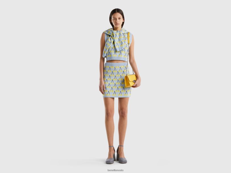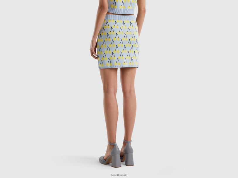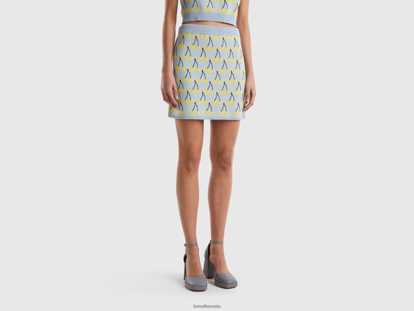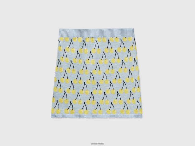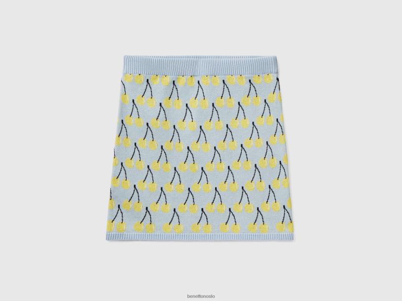 himmelblå Benetton kvinner himmelblått miniskjørt med kirsebærmønster 20TRB4169
