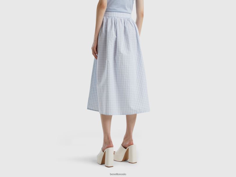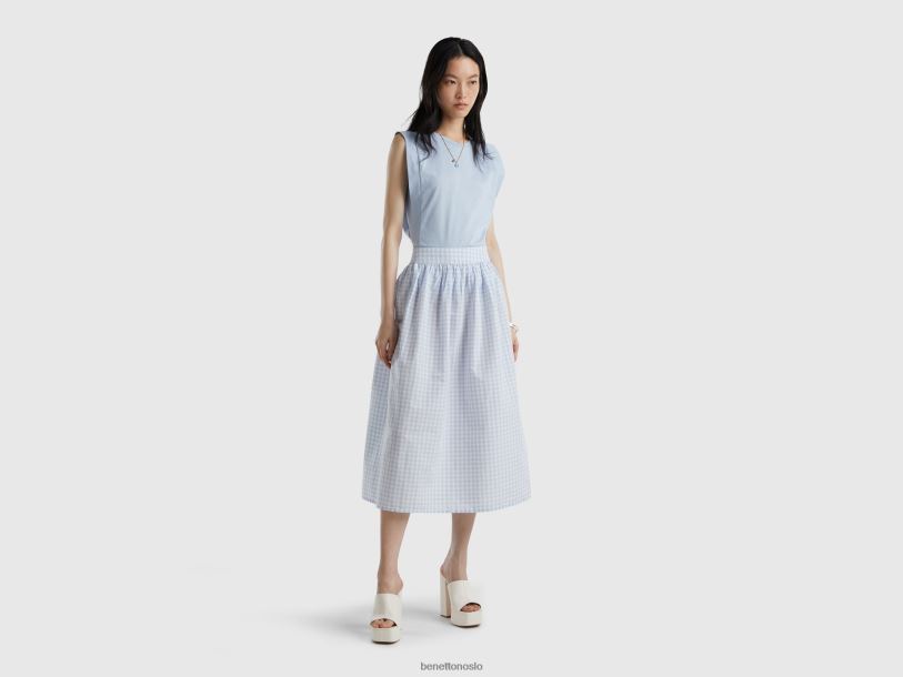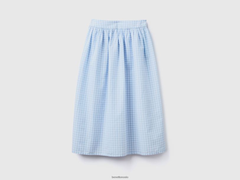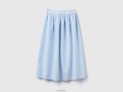 himmelblå Benetton kvinner vichy-skjørt i linblanding 20TRB692