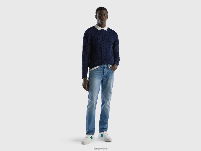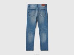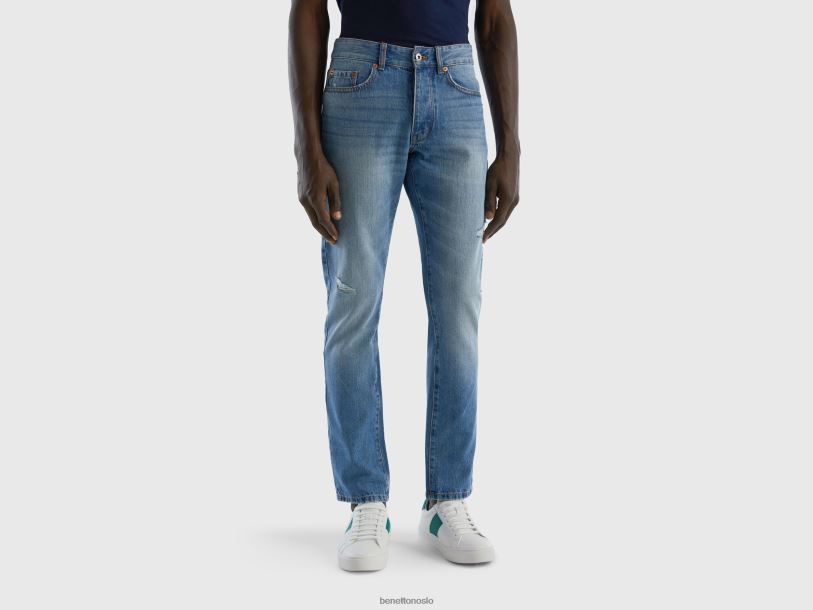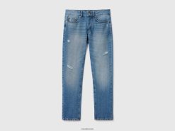 himmelblå Benetton menn jeans i 100 % bomull med rifter 20TRB4665