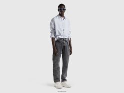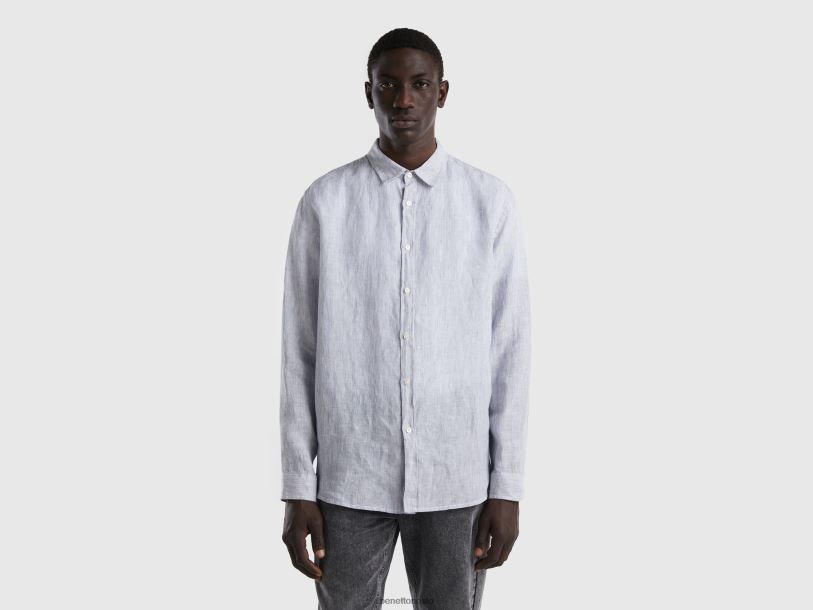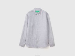 himmelblå Benetton menn skjorte i rent lin 20TRB4535