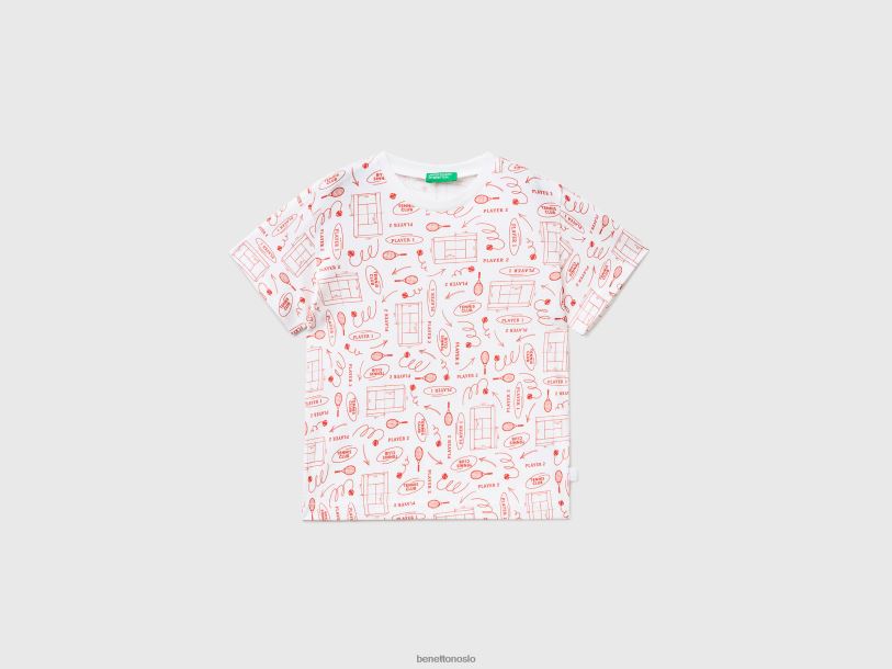 hvit Benetton barn 100% bomullsmønstret t-skjorte 20TRB5085