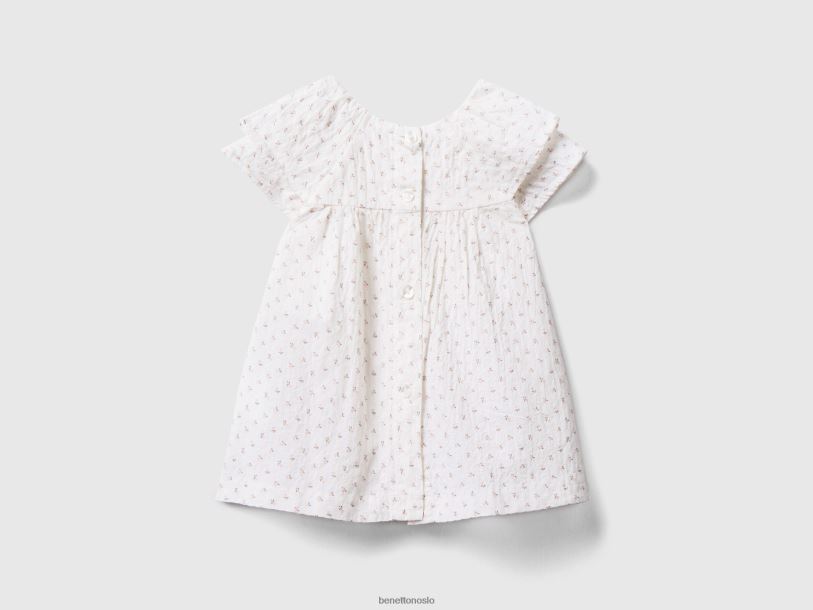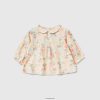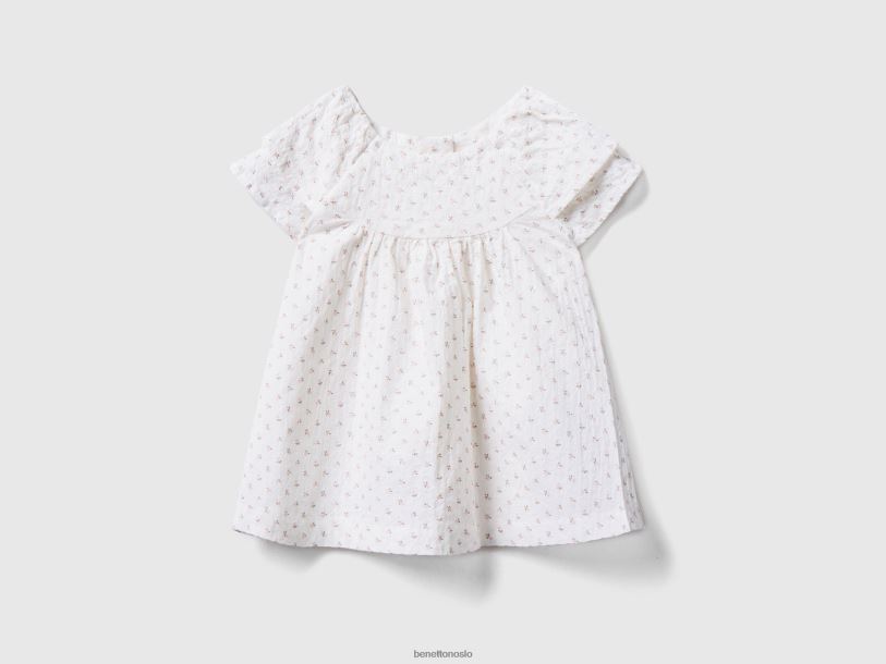 hvit Benetton barn blomsterbluse i stretchbomull 20TRB5902