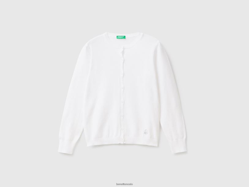 hvit Benetton barn cardigan med rund hals i bomullsblanding 20TRB3434