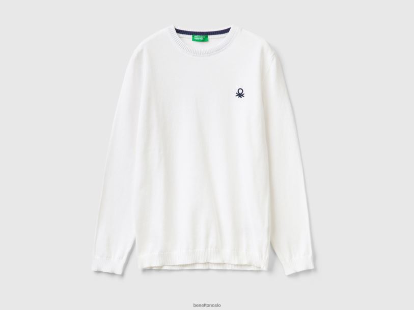 hvit Benetton barn genser i ren bomull med logo 20TRB6056