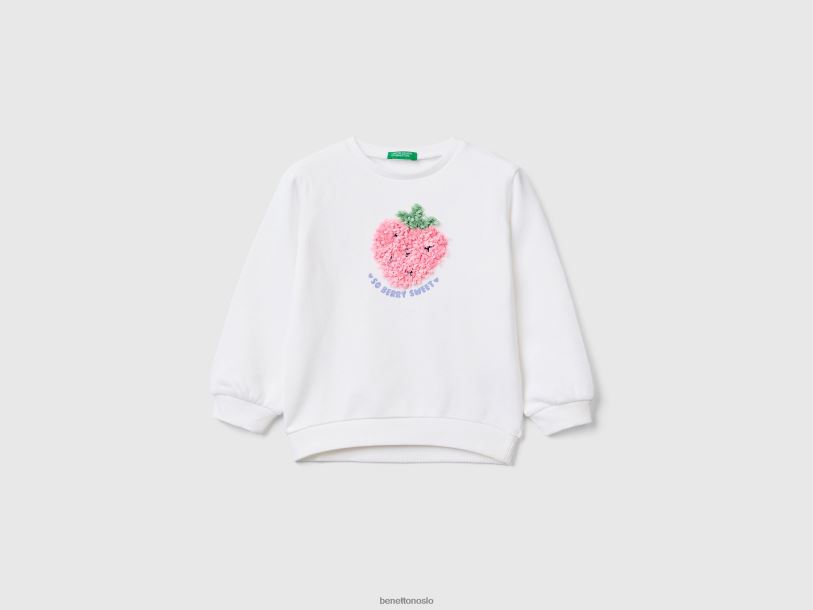 hvit Benetton barn genser med applikasjon med petallook 20TRB2912