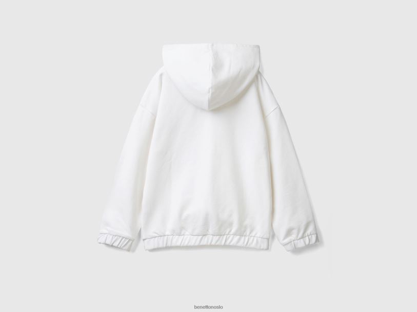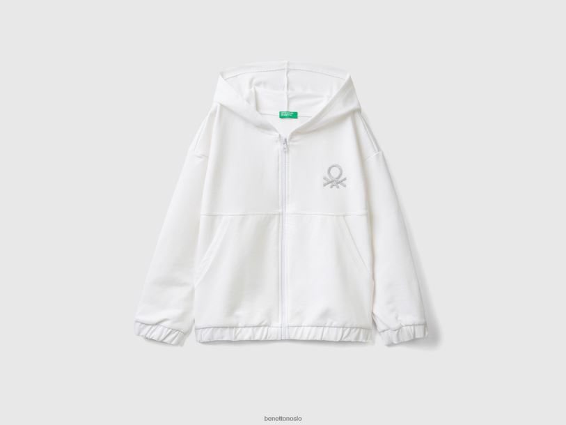 hvit Benetton barn hettegenser med glidelås og brodert logo 20TRB5350