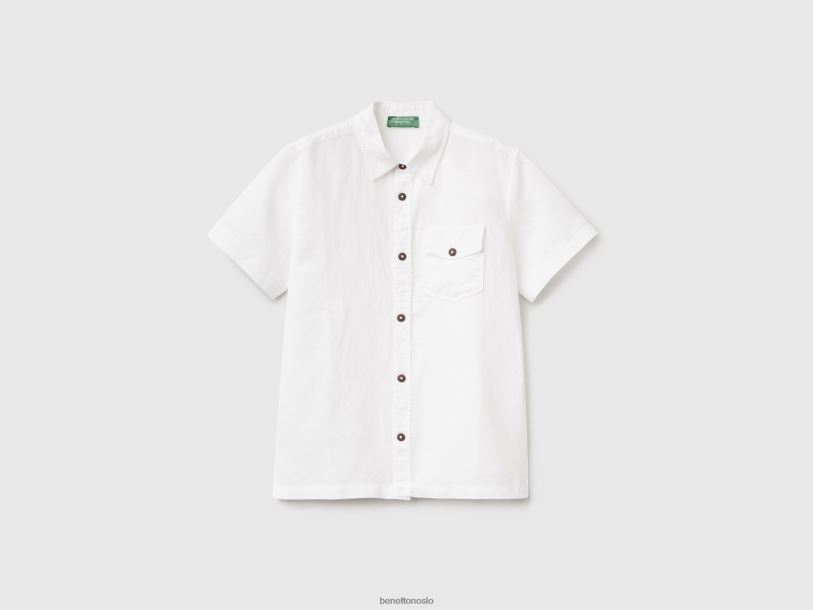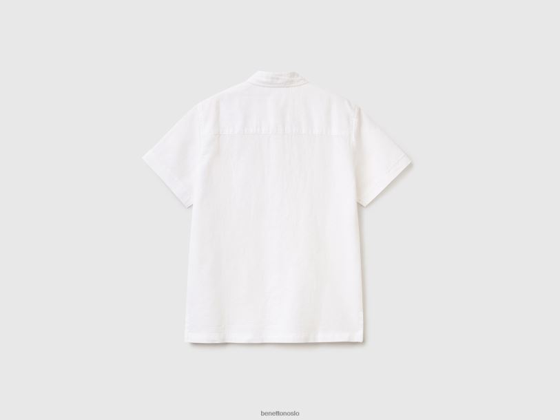 hvit Benetton kvinner kortermet t-skjorte i lett bomull 20TRB327