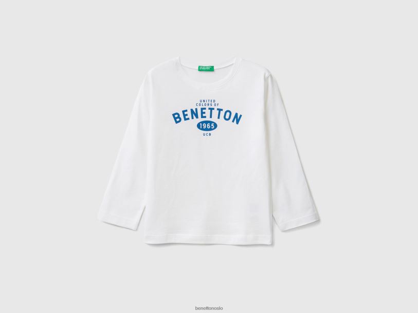 hvit Benetton barn langermet t-skjorte med logo 20TRB5081