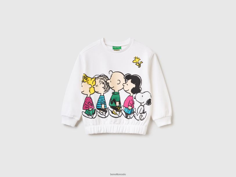 hvit Benetton barn peanøtter sweatshirt med rund hals 20TRB5621