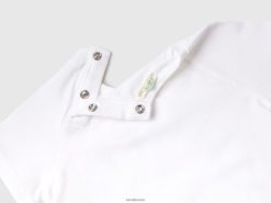 hvit Benetton kvinner T-skjorte med rund hals i slub bomull 20TRB372