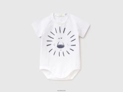 hvit Benetton kvinner T-skjorte i 100 % bomull med slagord 20TRB304