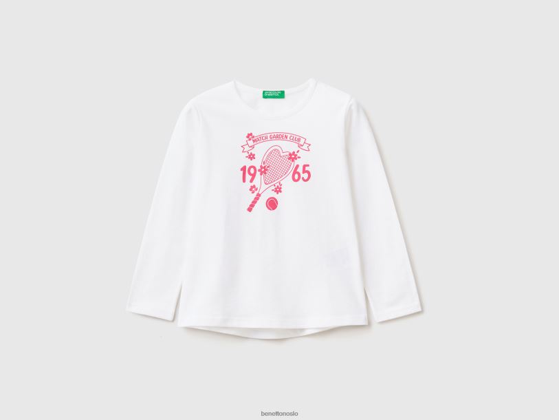 hvit Benetton barn T-skjorte i 100 % bomull med trykk 20TRB5577