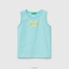 hvit Benetton barn t-skjorte i linblanding med lomme 20TRB2173