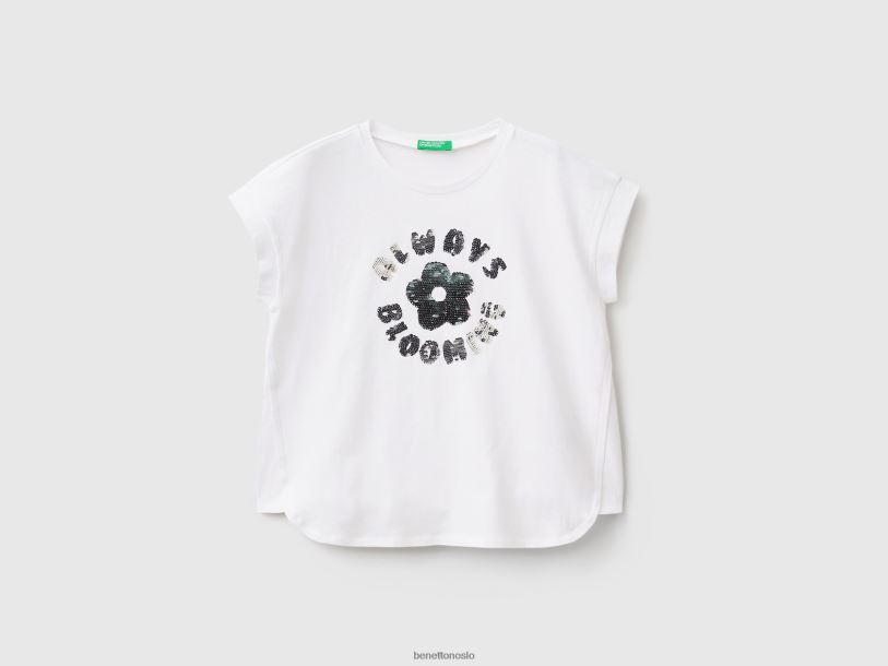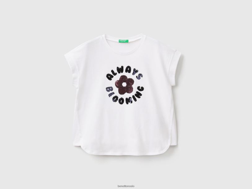 hvit Benetton barn t-skjorte med vendbare paljetter 20TRB5232