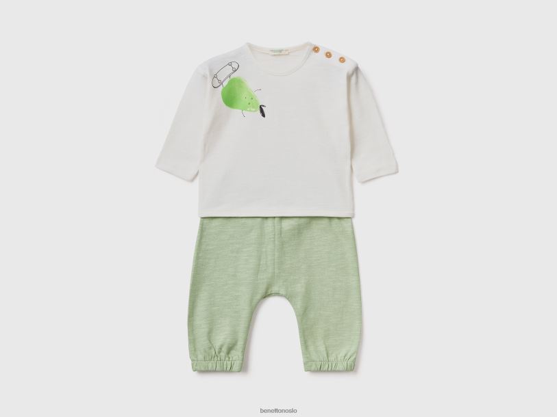 hvit Benetton barn t-skjorte og buksesett 20TRB5767