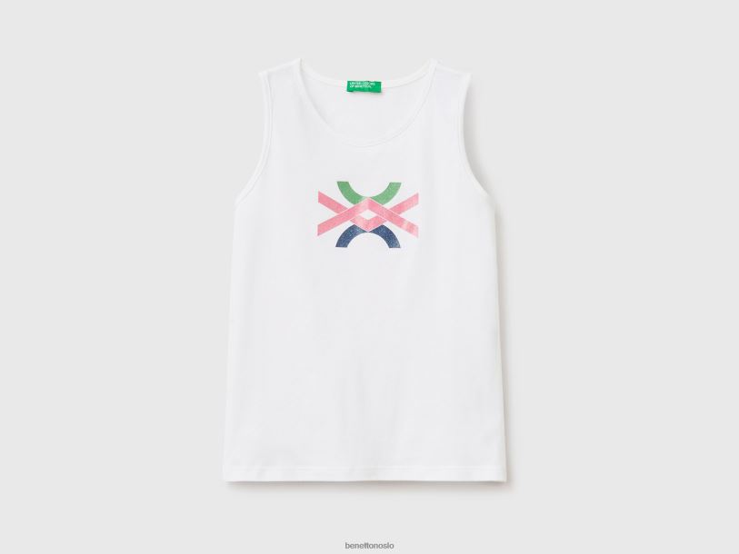 hvit Benetton barn tank topp med glitrende logotrykk 20TRB5284
