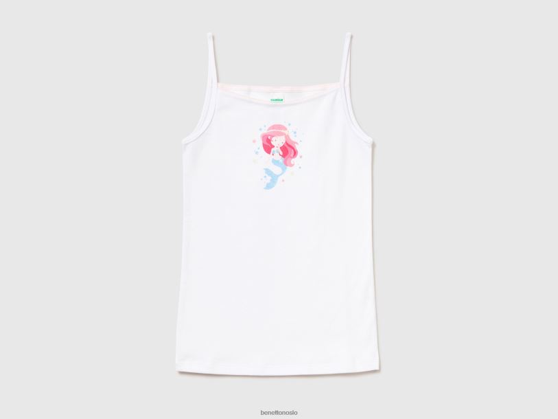 hvit Benetton barn undertøys-topp med trykk 20TRB5514