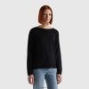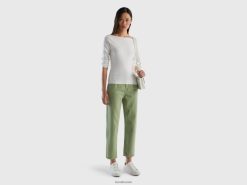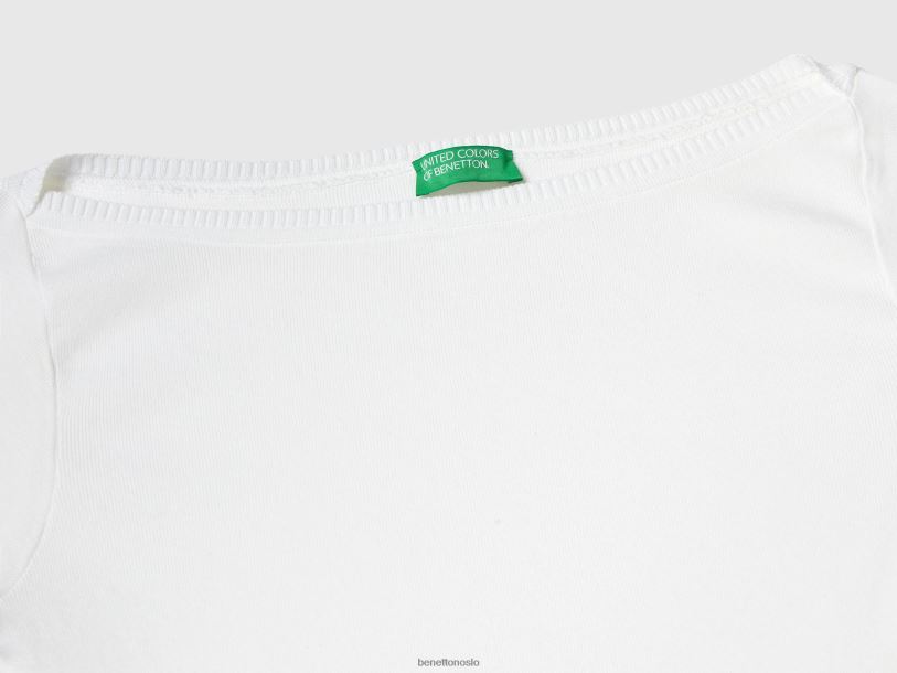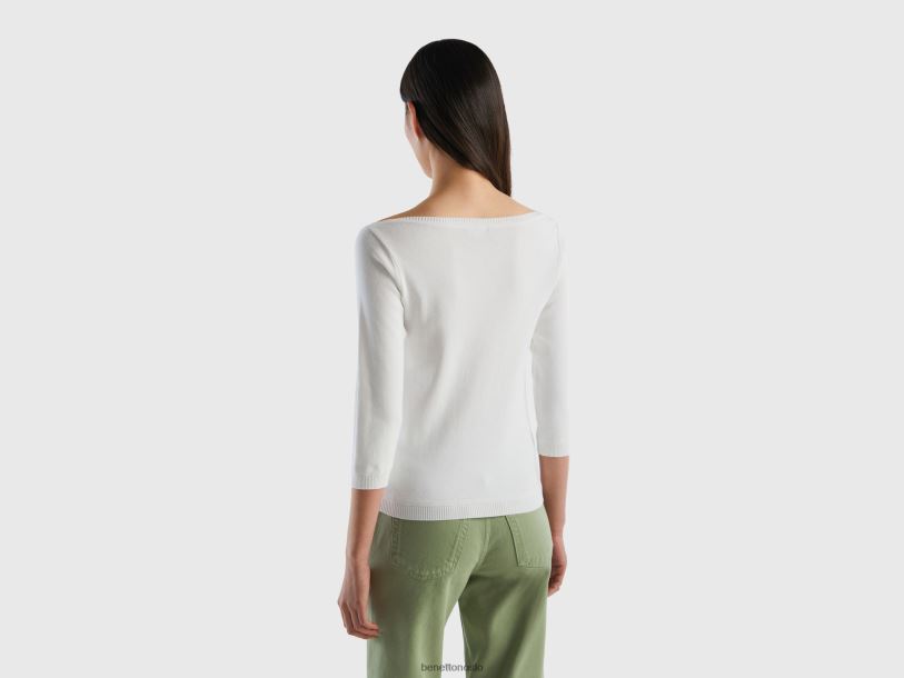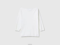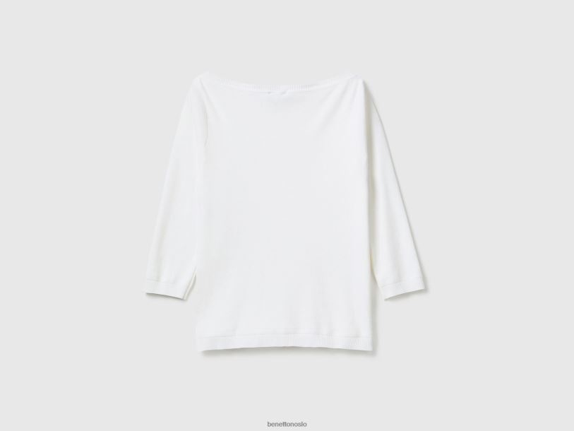 hvit Benetton kvinner 100% bomullsgenser med båthals 20TRB207