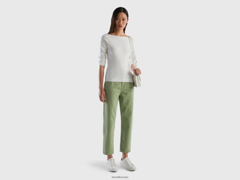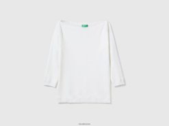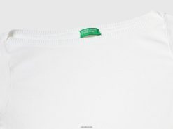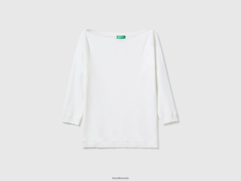 hvit Benetton kvinner 100% bomullsgenser med båthals 20TRB3638