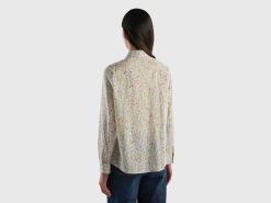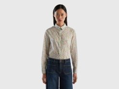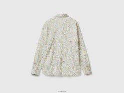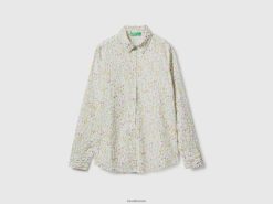 hvit Benetton kvinner 100% bomullsmønstret skjorte 20TRB3965