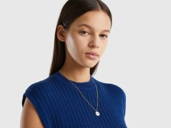 hvit Benetton kvinner T-skjorte med rund hals i slub bomull 20TRB372