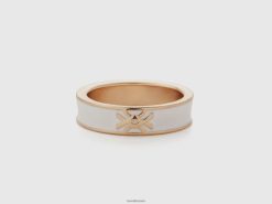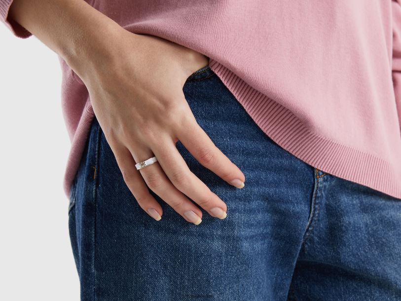 hvit Benetton kvinner t-skjorte i bomull med logotrykk 20TRB309