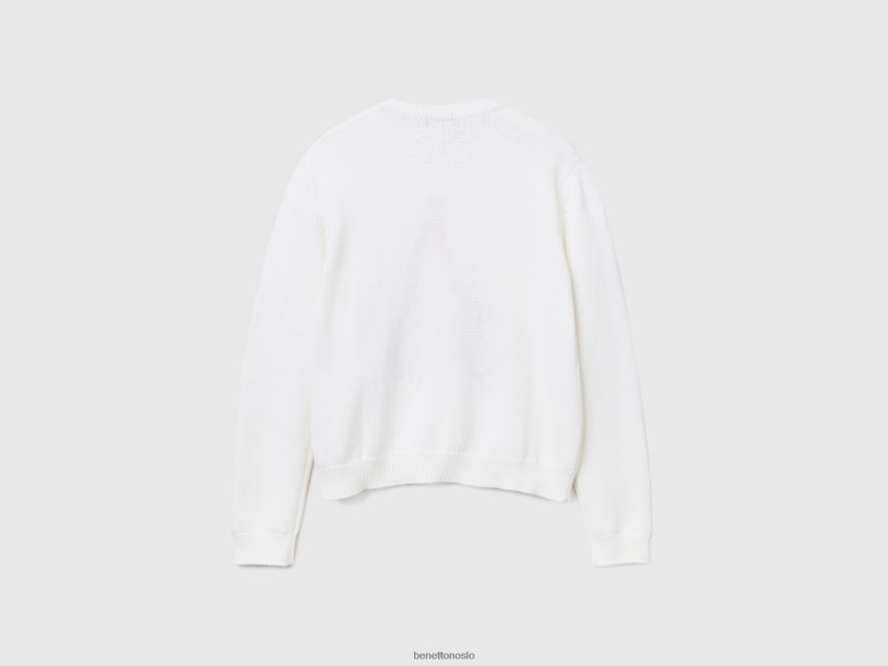 hvit Benetton kvinner hvit genser med kirsebærinnlegg 20TRB68