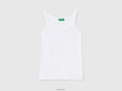 hvit Benetton kvinner hvit tank topp i ren bomull 20TRB451