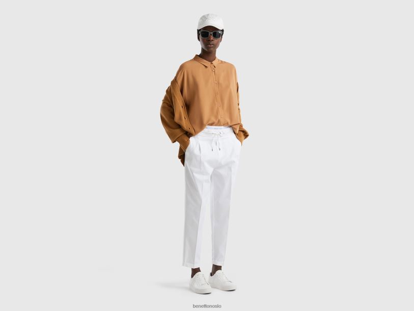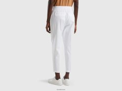 hvit Benetton kvinner joggebukser i stretchbomull 20TRB626