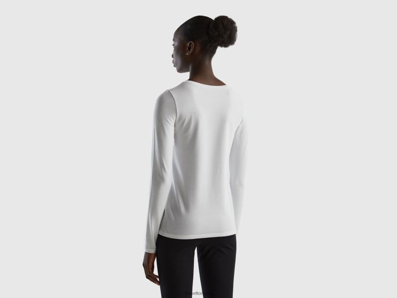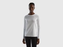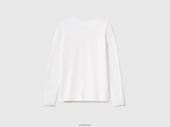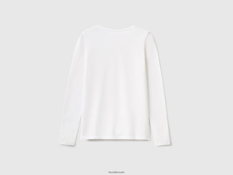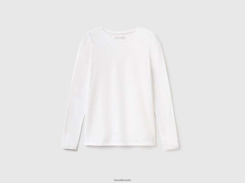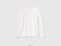 hvit Benetton kvinner langermet super stretch t-skjorte 20TRB4207