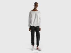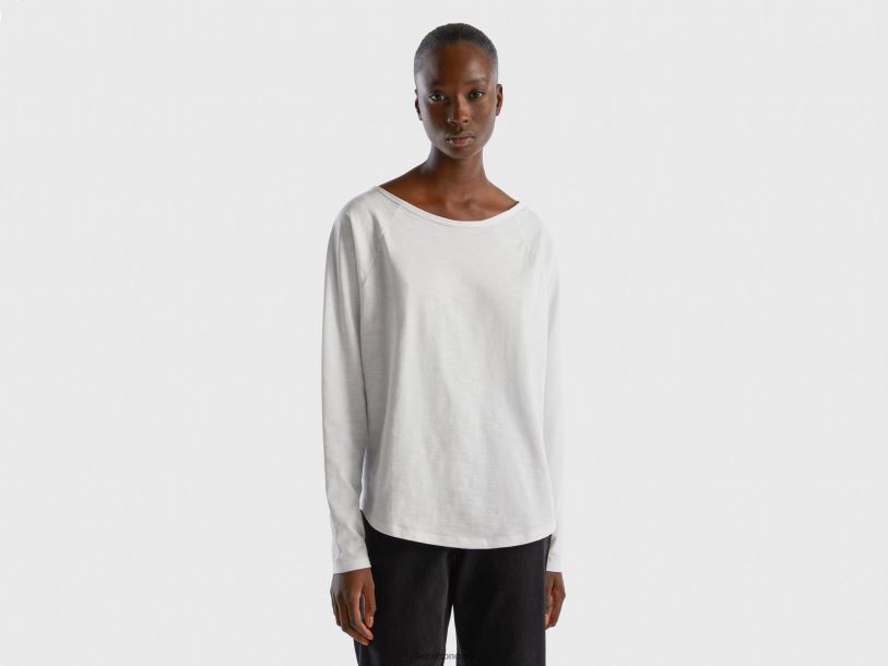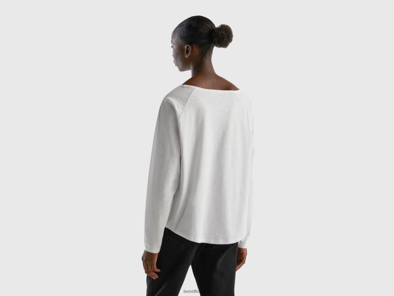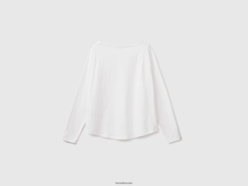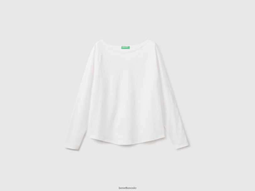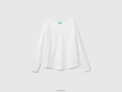 hvit Benetton kvinner langermet t-skjorte i ren bomull 20TRB357