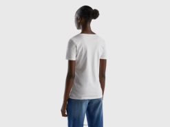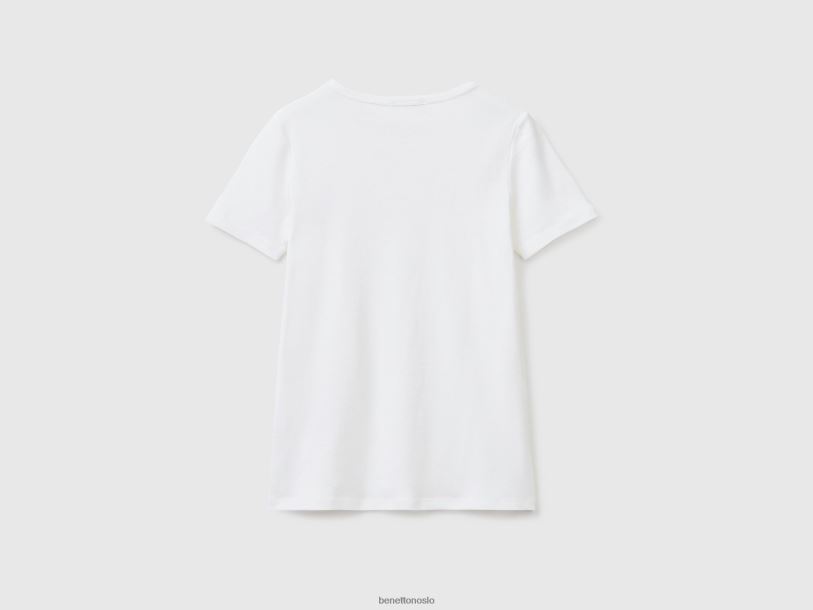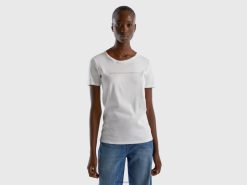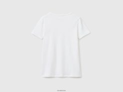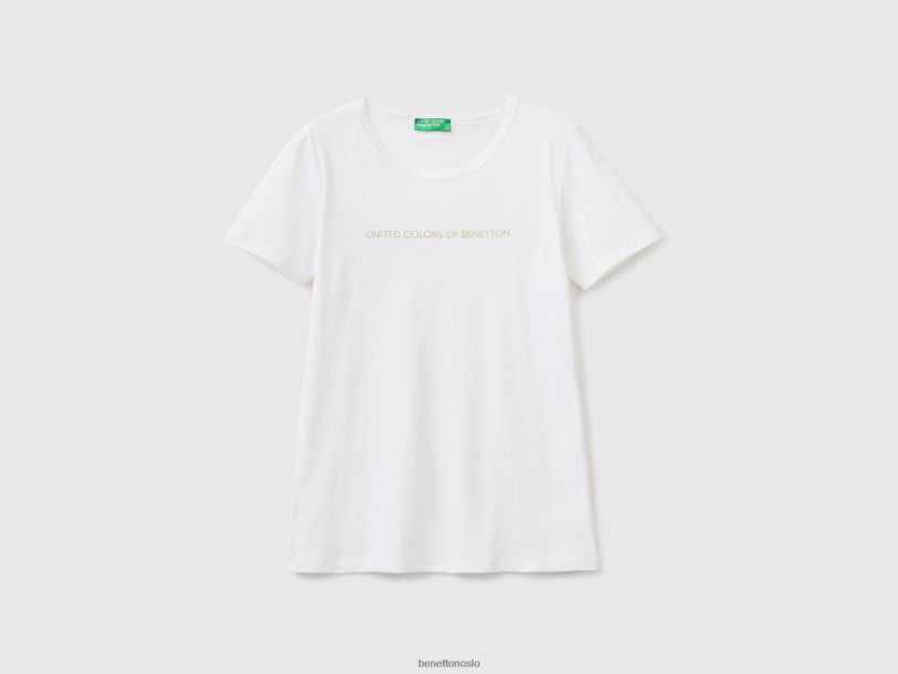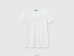 hvit Benetton kvinner t-skjorte i 100 % bomull med glittertrykk logo 20TRB450