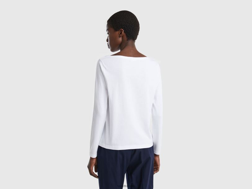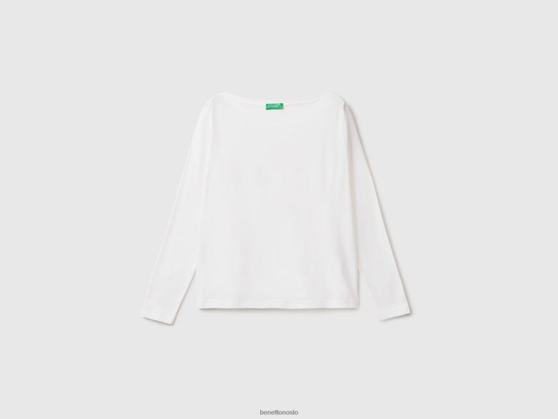 hvit Benetton kvinner t-skjorte med båthals i 100 % bomull 20TRB3786