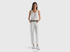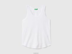 hvit Benetton kvinner tank topp i lett bomull 20TRB3776