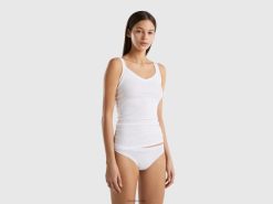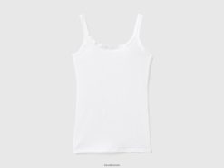hvit Benetton kvinner tank topp i superstretch økologisk bomull 20TRB1098