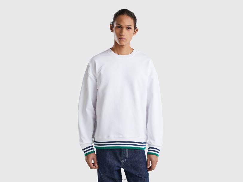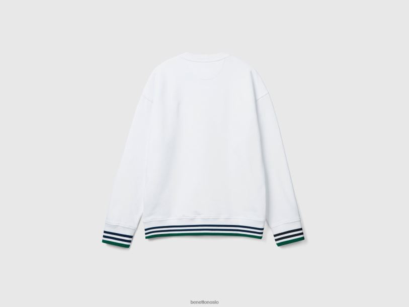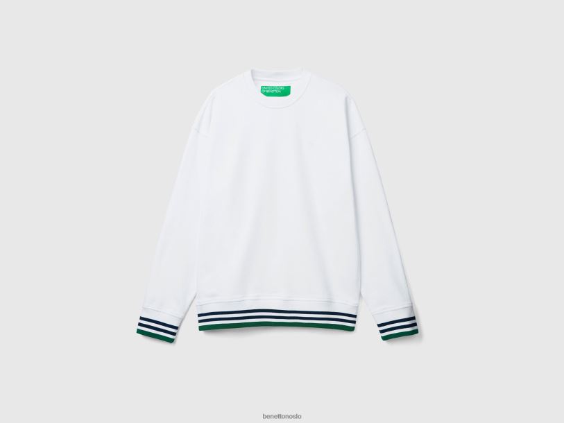 hvit Benetton menn genser med rund hals i ren bomull 20TRB4504