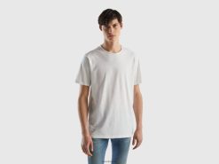 hvit Benetton menn hvit t-skjorte i slub bomull 20TRB1307